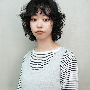 顔まわりにパーマがある事で軽い印象に