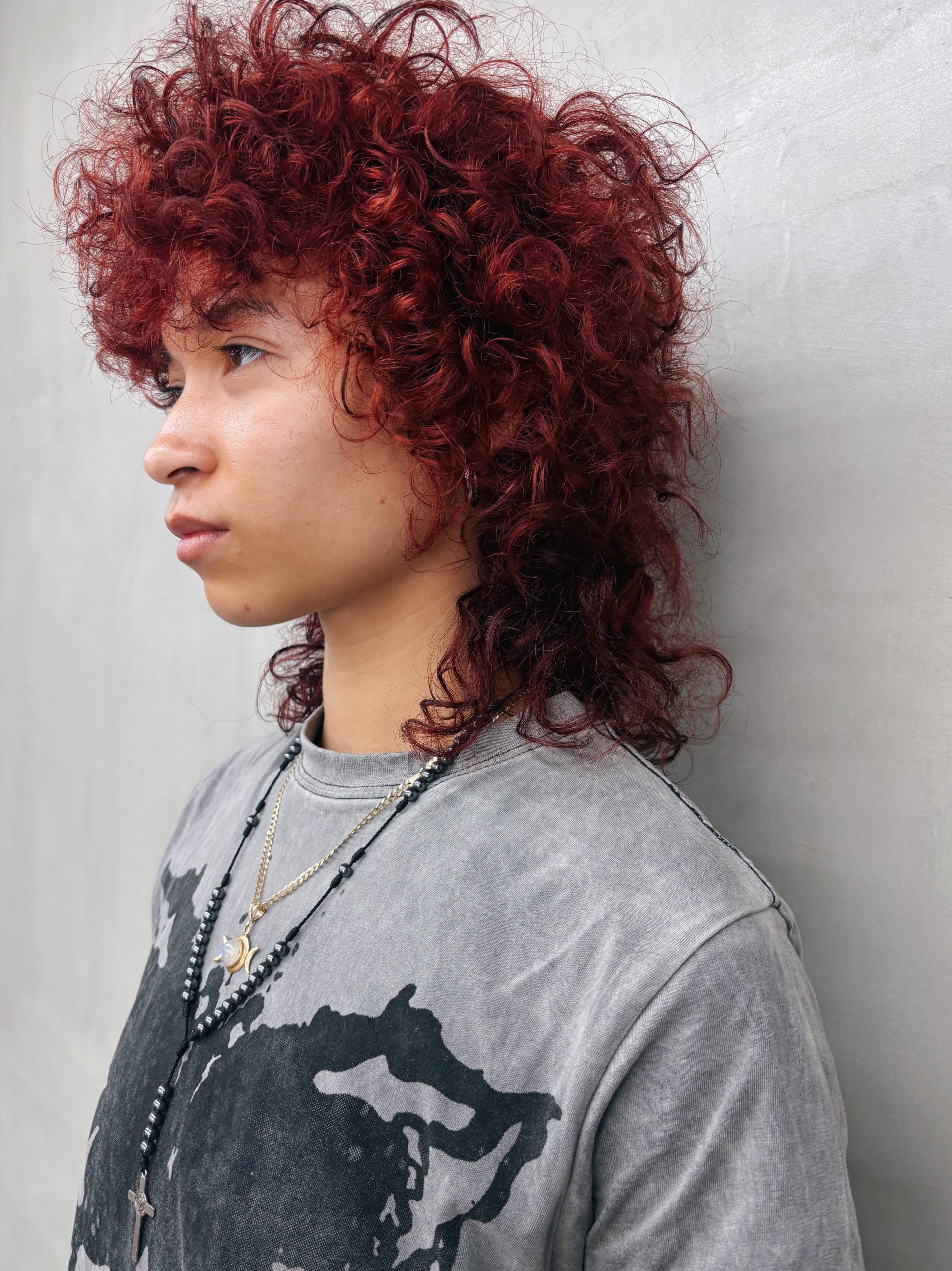 冬に映えること間違いなし!赤髪くるくるウルフパーマ